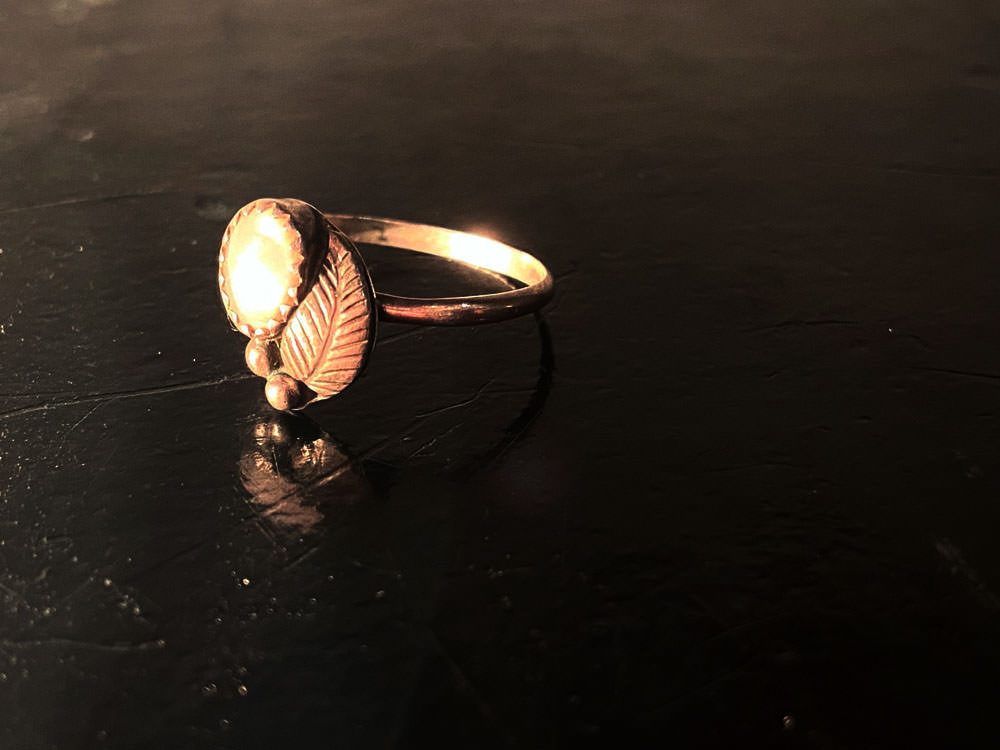 トップにはリーフと白い石があしらわれており